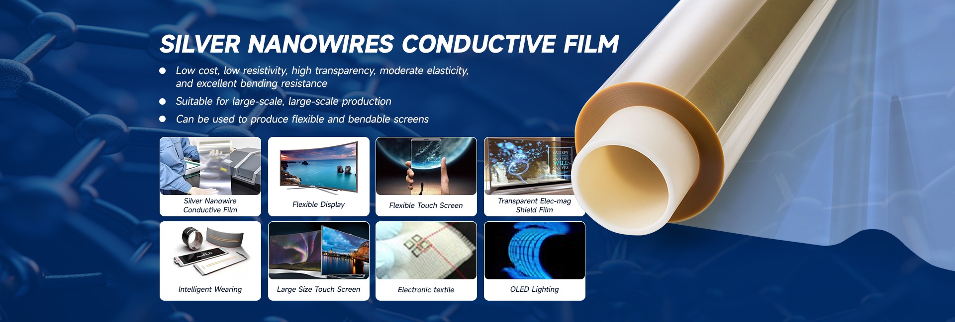 Película de nanocables de plata conductora transparente de 25 ohmios de baja resistencia superficial de alta transparencia para pantallas flexibles
